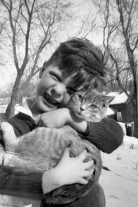 One day, in the months after my mother’s death in 2003, I happened to look out our bathroom window of the house we owned on Windsor Road, Torquay. A catwas crossing the flat roof of the extension below. I tried to shoo it away, and it started to move toward the edge of the roof, then it stopped, turned and smiled at me. That was a complete surprise!