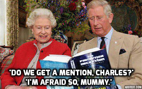 A relative of mine claims to have had a close encounter of the first kind (CE1) with a UFO (which means that she saw one in the sky above her home). After that sequence, she had a voice speak to her through the bathroom tiles when she took a bath. One of the strange things she was told was that the Queen wasn’t alive. Well, that got her attention, didn’t it? David Icke says something similar, but in a different way: he says the Royal Family are hybrid Lizard/Humans, meaning that their bloodlines are energetically changed to a different frequency. This, for all intents and purposes, explains that they are ‘dead’ emotionally to this world, and have no empathy for the ordinary people (their subjects). (Maybe that is why Diana had such a hard time with life in the Family Business.)
