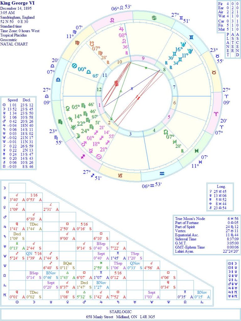 It also means that royals have birth charts, like this one for Albert Fredrick Arthur George Windsor, which means that astrologers can peek behind the royal curtains.