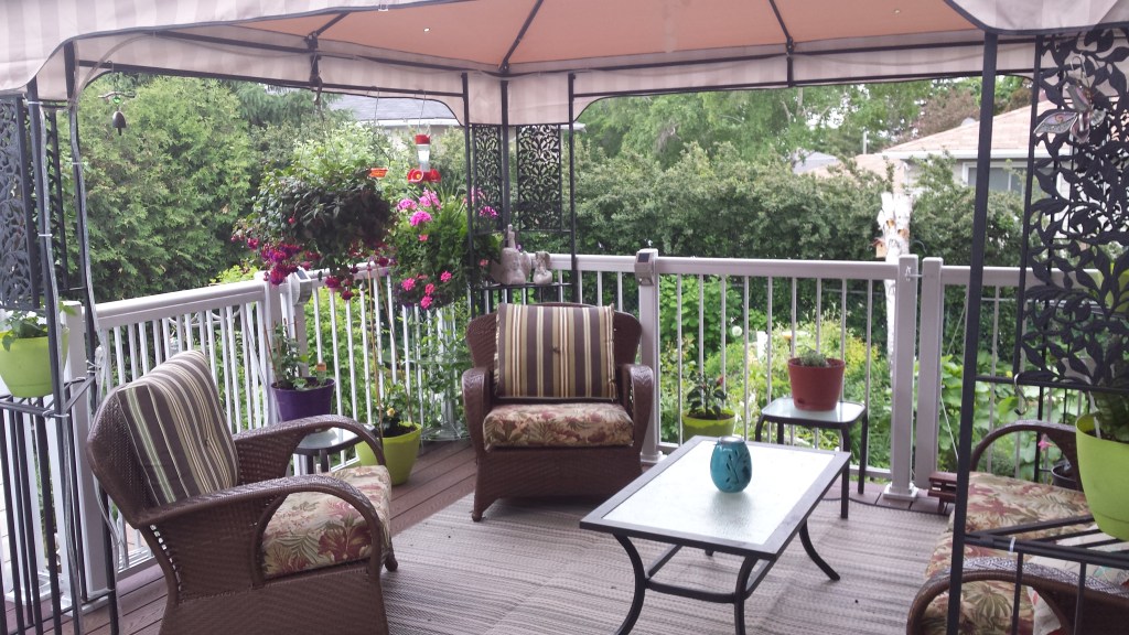 Then we had a tornado wind at over 80 km-per-hour come through our town, and the ‘almost’ fit awning was under threat of being blown away, so we took it off the gazebo frame. That was on Wednesday night.