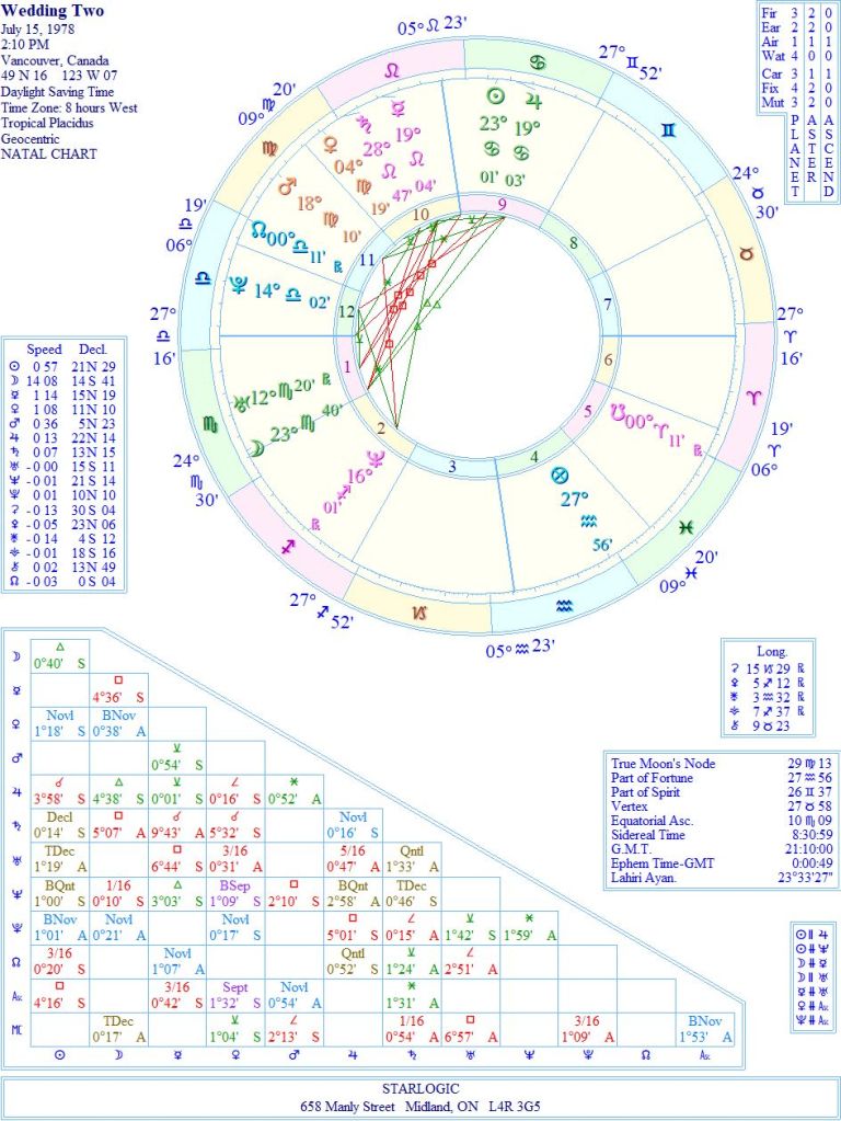 Anyway, the title of this post presented itself to me this morning, in response to that feeling. It was suggested that perhaps I should look at my three weddings astrologically.