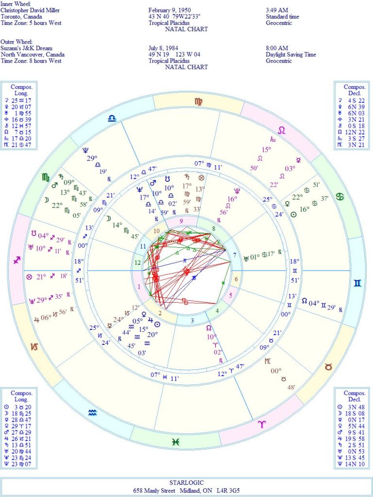 The Yod (formed by my natal Jupiter and Ascendant) is pointing to the ‘event’ Sun. That’s a good thing. And the ‘event’ Ascendant is conjunct my ‘natal’ Pluto. At the same time, the ‘event’ Mars is conjunct my ‘natal’ Moon: the inevitable breakup of our home.