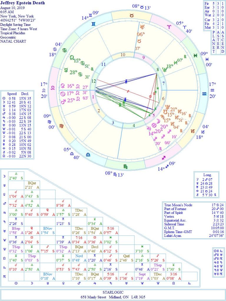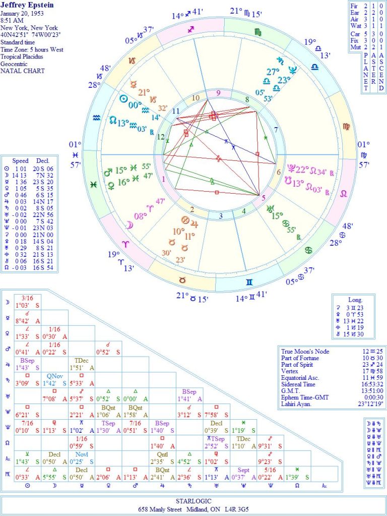 His birth details are not known, and yet my Kepler 7.0 program had it set for 3:15 am. As this was the moment when the Sun entered Aquarius that year, I suspect the compiler wanted to make sure Epstein was ‘officially’ an Aquarian. Strange reasoning.
