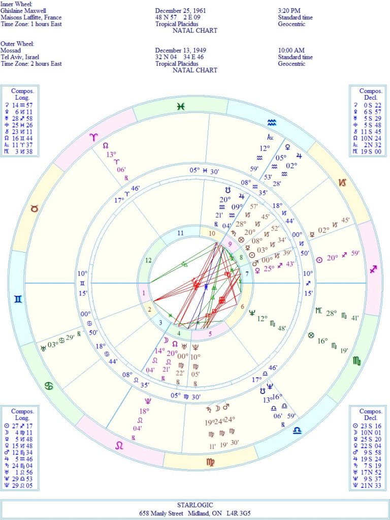Do you also see that strange conjunction between Maxwell’s fatal Venus and Mossad’s close Moon/Mars aspect? This implies a feminine element to the event. Interesting.