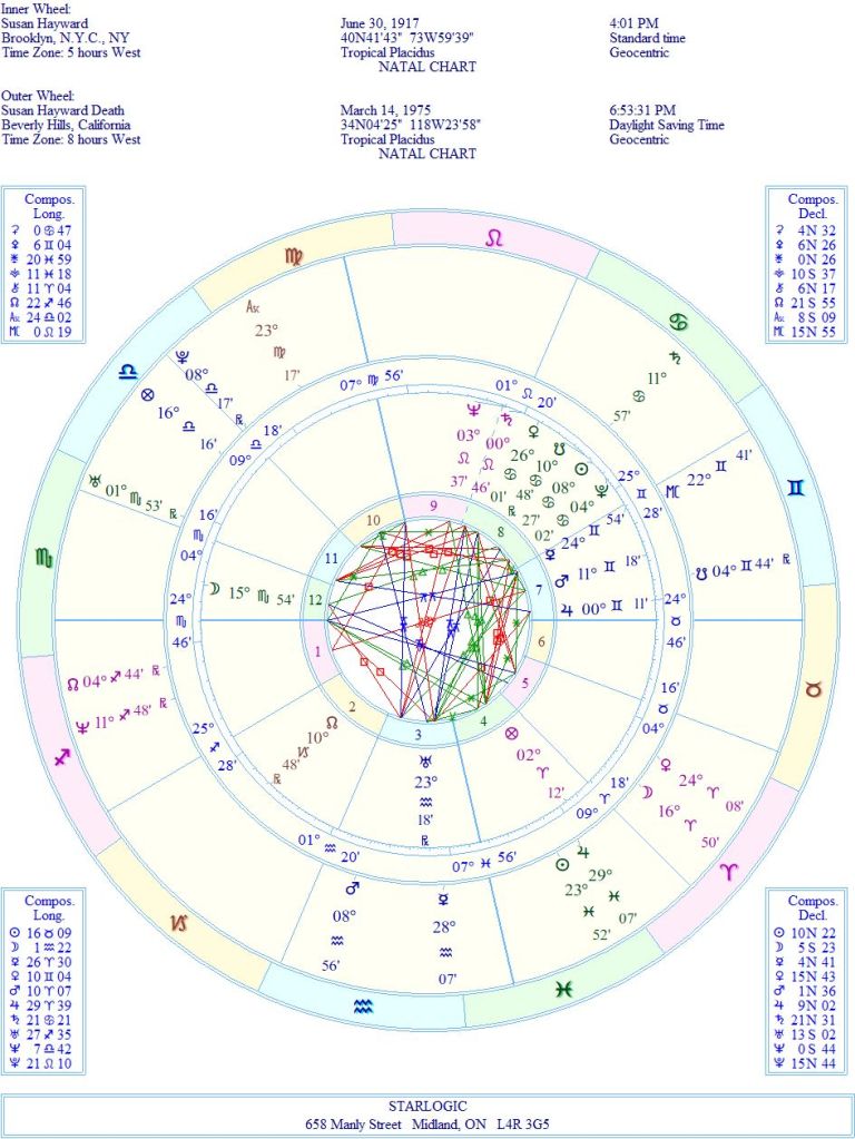 Her death time is randomized. And yet, there Saturn is again, this time transiting her natal Sun. Death was stalking her for years, ever since her two-pack-a-day smoking habit caught up with her. This is where her grandest performance comes into focus.
