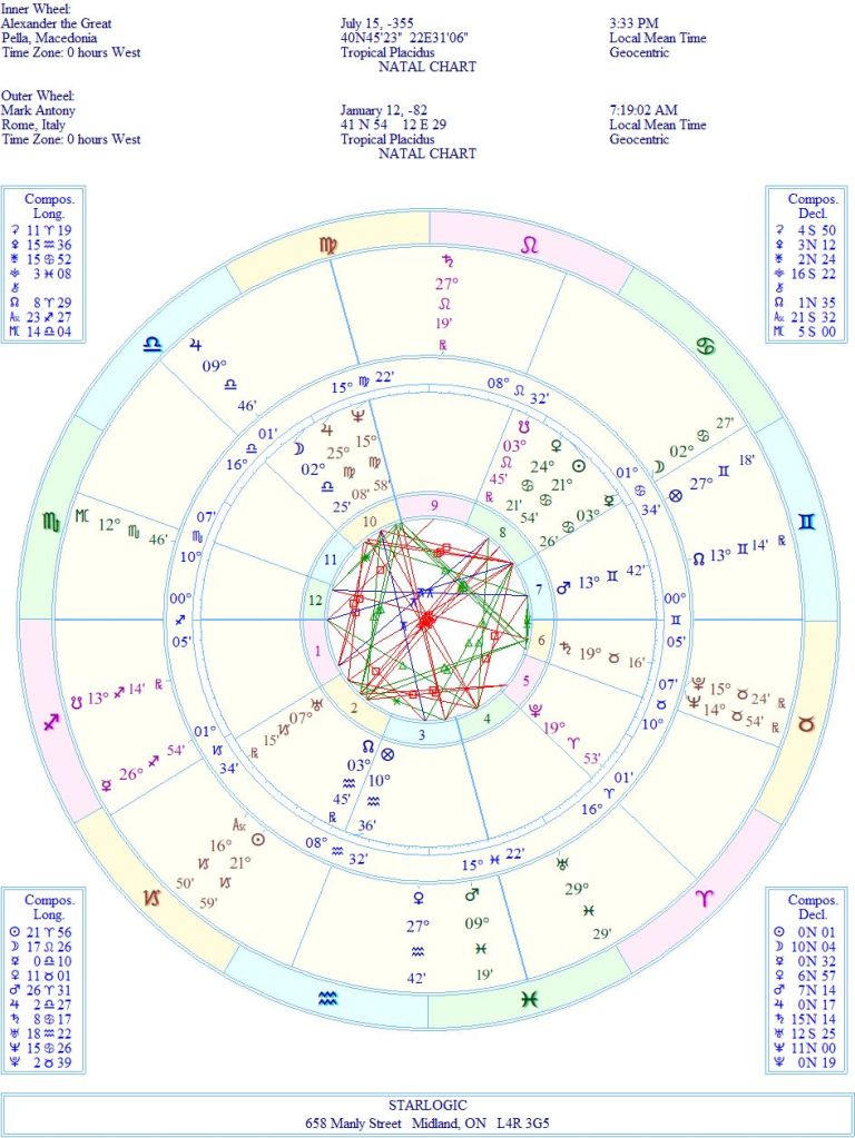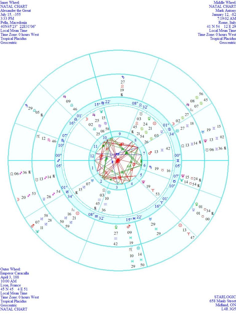 These two are definitely connected. I have previously compared Alexander’s and Caracalla’s birth charts. Now, I need to demonstrate how Antony and Alexander are connected: