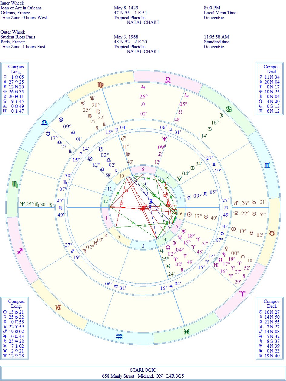 The lifting of the Siege of Orléans connects almost exactly to the Paris student riots of May 1968, 539 years later.