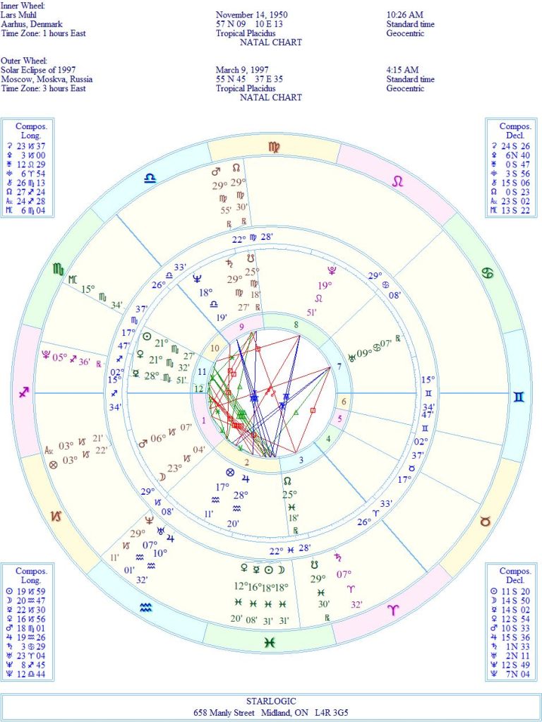 To then combine this chart with Lars’ birth chart, allows us to see the death throes of his former life as a singer-songwriter. It was the day he was reborn into a spiritual life.