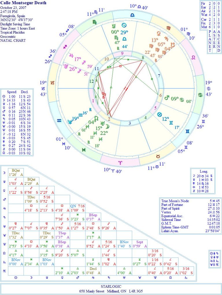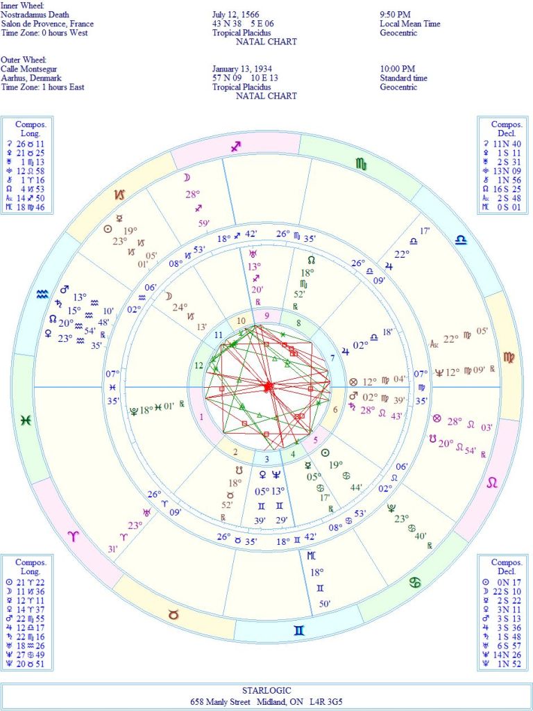 Calle’s death chart is randomized. I just wanted to let you see how his life’s work was completed by then. I won’t combine his birth and death charts, because I want to show you something else, instead. Remember what I wrote yesterday about Nostradamus being the original Seer? Well, then it struck me, Calle is one of a Seer-ies.