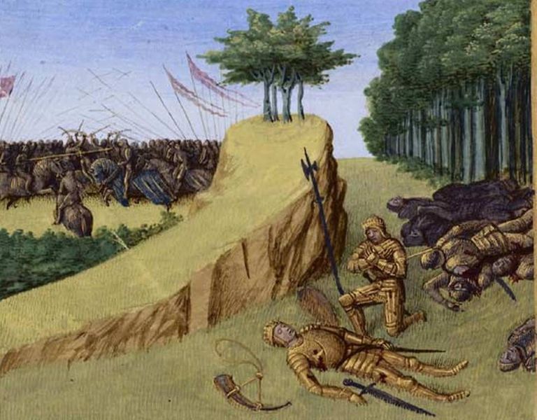 The timing of this battle chart was originally randomized, but legend has it that the attack happened in the evening. By dusk, the Basques had killed the rearguard Franks, including Roland and made off with the looted baggage. So I chose 6:40 pm local time.