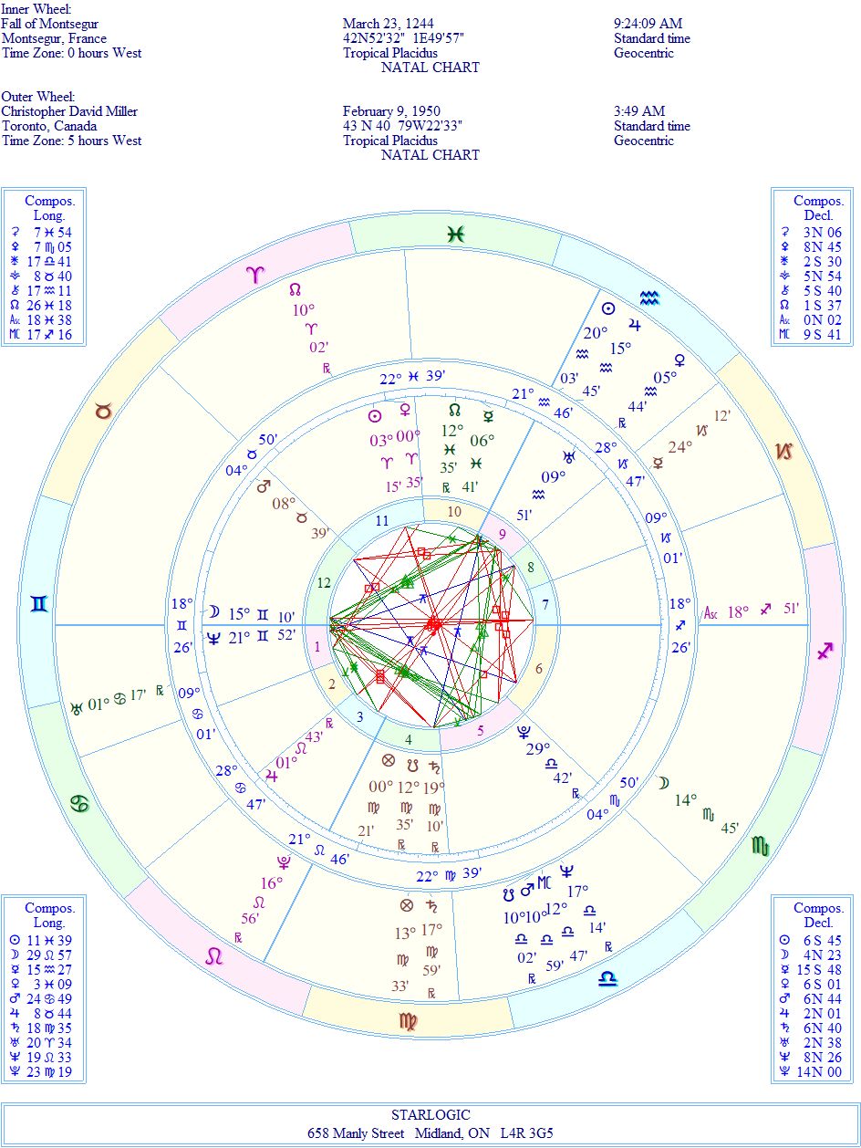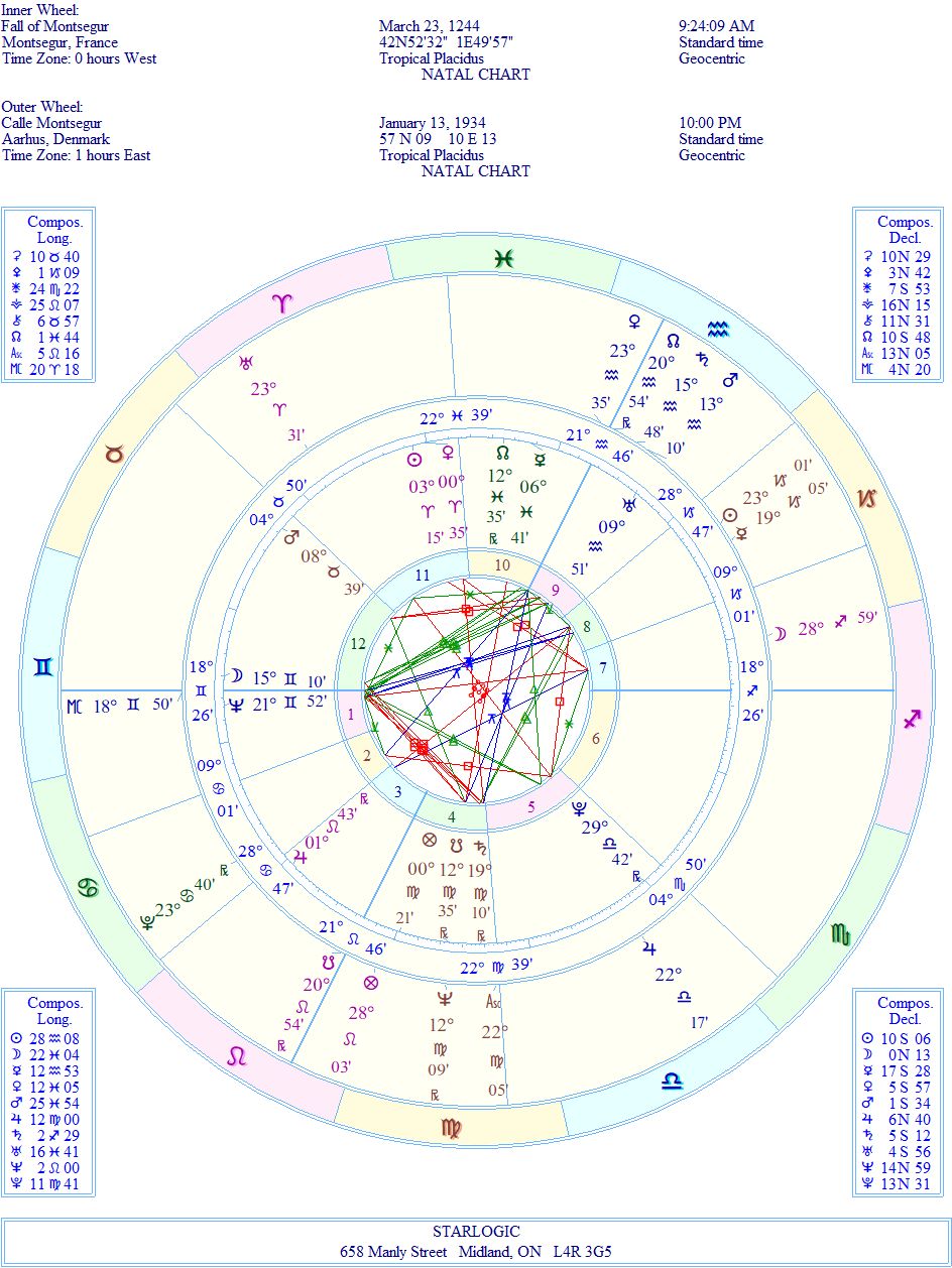 I’ve been writing about the Cathars for many years now. But, except for some individuals that I have known from my association with Fountain International, I have never seen any birth charts that tie in with the fall of the castle, and the burning of the inhabitants, until now.