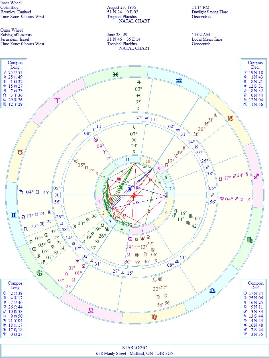 After today’s post about the Raising of Lazarus event chart, I decided to look at Colin’s birth chart, in connection with this past event.