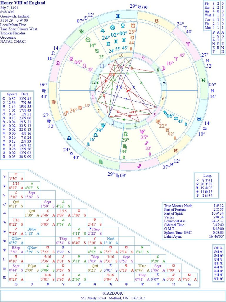 Astrologically, Henry was a bundle of contradictions. There are four inconjuncts in his chart.