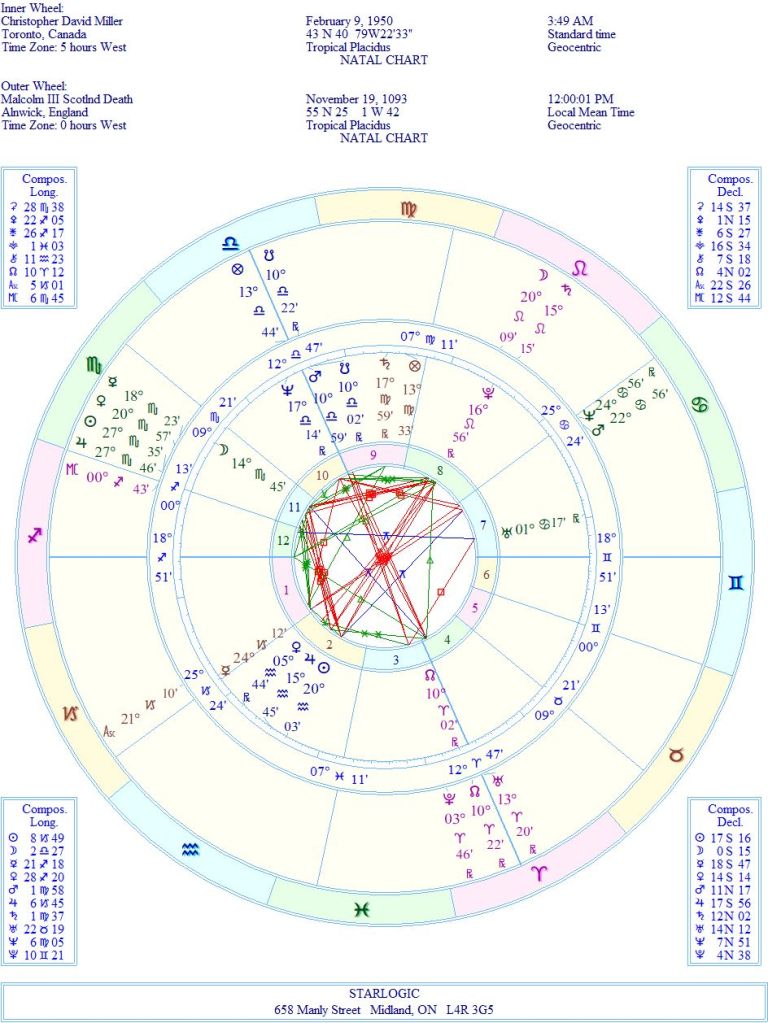 Since neither Margaret nor Malcolm have accurate birth details, I could only research their deaths, and compare the charts to this friend and her husband’s birth charts.