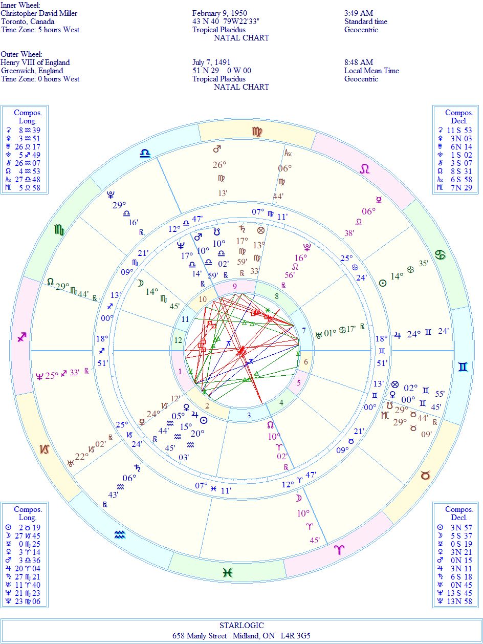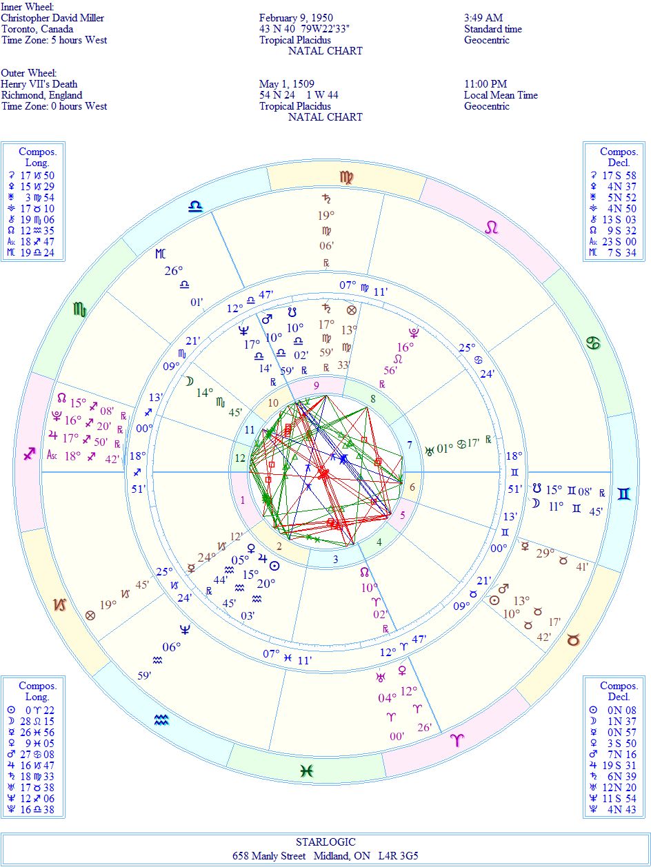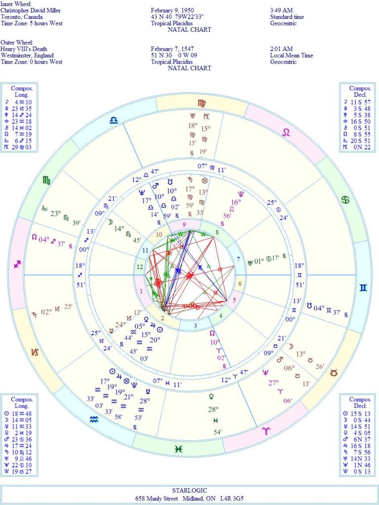 Henry VIII’s birth chart has some connections with mine, especially Henry’s Ascendant on my 9th House cusp, an obvious reincarnational hint. But the death chart is better.