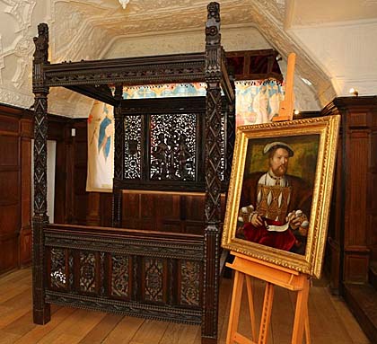 The bedroom that was more masculine was Henry’s parents’ room. They were dead for more than 25 years by the time Cardinal Wolsey gave Henry this palace in 1529. So, the room was an homage to Henry VII and Queen Elizabeth.