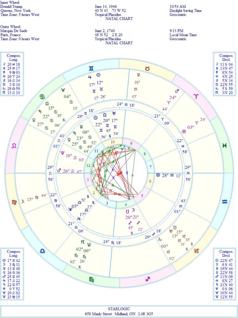 Can you see what I’m seeing? Venus and Saturn in both charts are conjunct to each other. Sade’s Jupiter is conjunct Trump’s Uranus. Trump’s Mercury is near Sade’s Neptune. And Trump’s Jupiter and Moon are forming a Yod with Sade’s Mercury.
