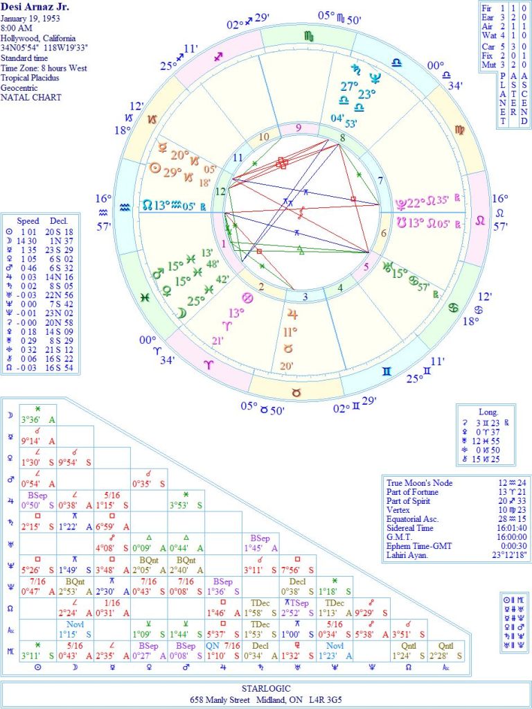 I am reminded that Astrology is sometimes a ‘game of degrees’. My reason for thinking that is the fact that on the day following Desi Jr’s birthday, Jeffrey Epstein was born.