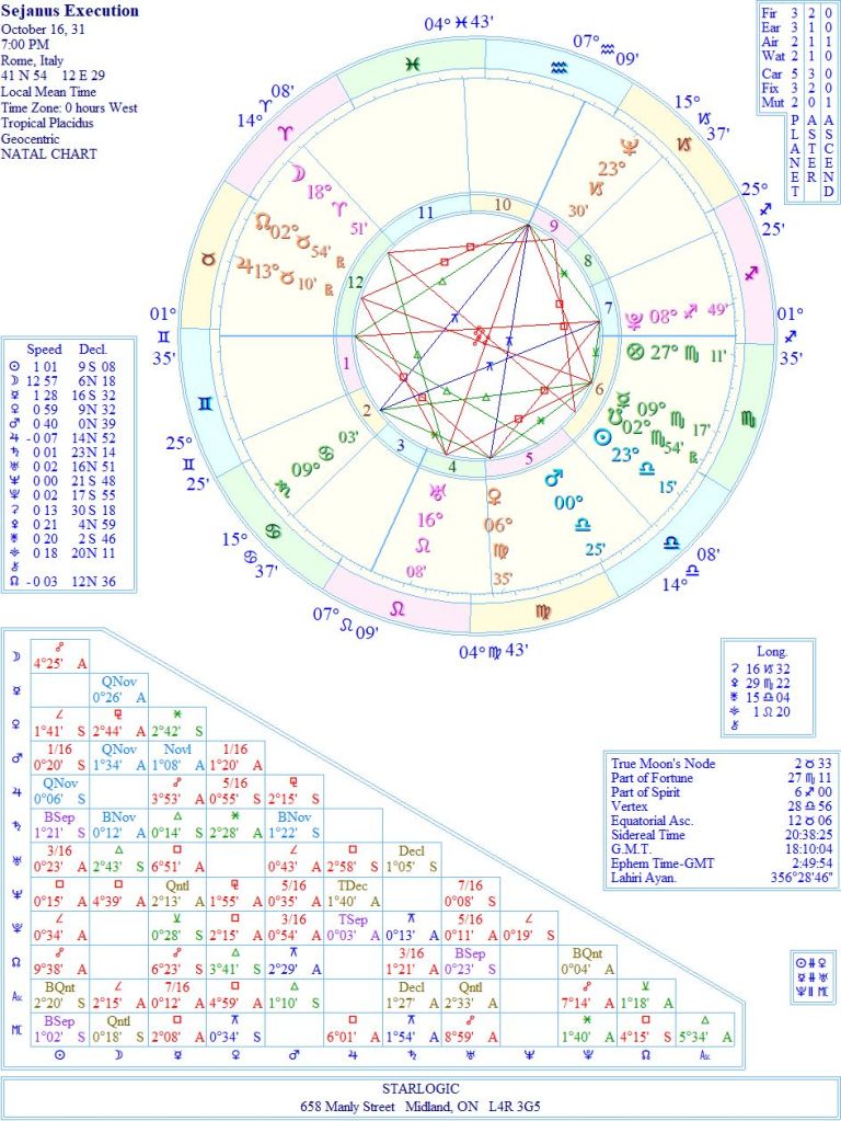 I suspect this ‘death’ chart is accurate, based on the resulting interactive Yods. What it shows me is something I long predicted: Sejanus was not plotting behind Tiberius’ back; instead, he was plotted against by the Roman Senators. The charges were trumped up, based on ‘rumours’ that someone had whispered into Tiberius’ ear. Same as it ever was.