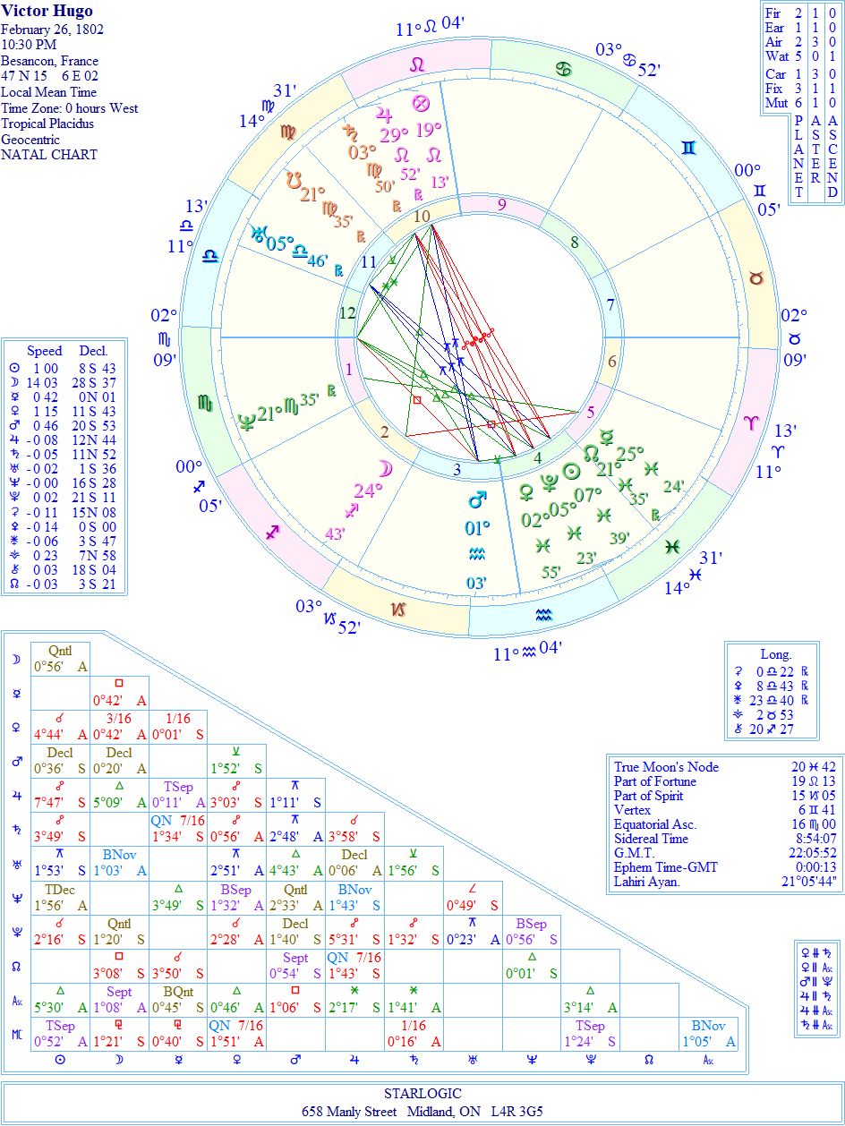 (As I read through the descriptions of these aspects, I was struck by the idea that Hugo personified the striving towards republicanism that the French went through in those times. He was a ‘rebel with a cause’ and he lived his whole life to further that cause.)