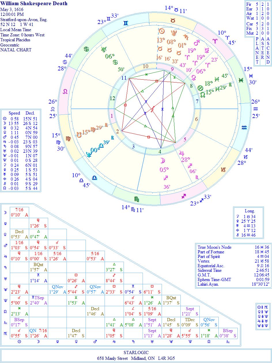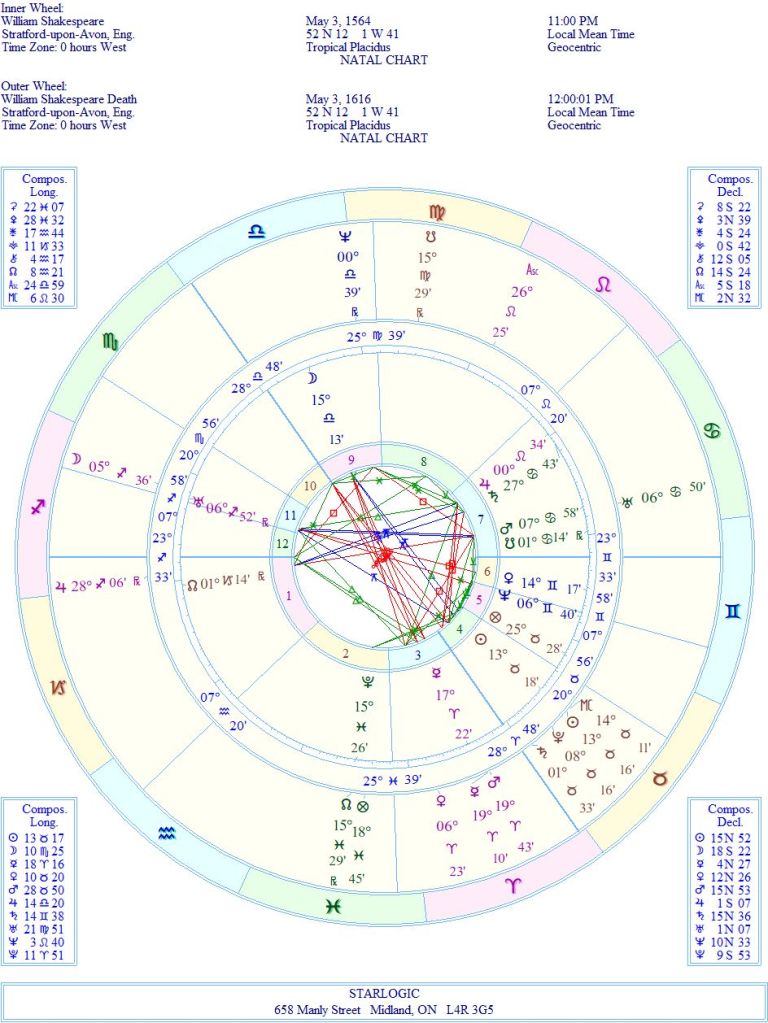 Previously, I had written a post about Shakespeare’s birth chart. The Yod that was featured there is significant to my way of thinking: it was pointing at the Moon.