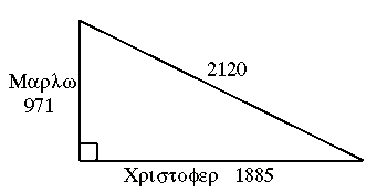 The reason why Christopher Marlowe is ‘Our ever-living poet’ resides in the way that 2120 squares his name by means of a right-angled triangle. Such a triangle whose perpendicular members measure 971 and 1885 has a hypotenuse of 2120.