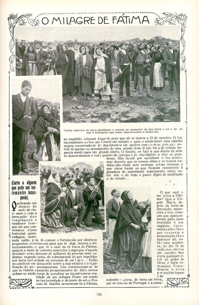 Lucia Santos means “holy light”. It would seem that she was well named. And the image (above) looks like she wasn’t a happy camper. Her job was serious: she had to withstand enormous amounts of pressure from her parents, her relatives, the local politician and priest to recant her ‘lies’. And when she was facing an inquisition by a Roman Catholic official, only her ‘guardian angel’ kept her from cracking.
