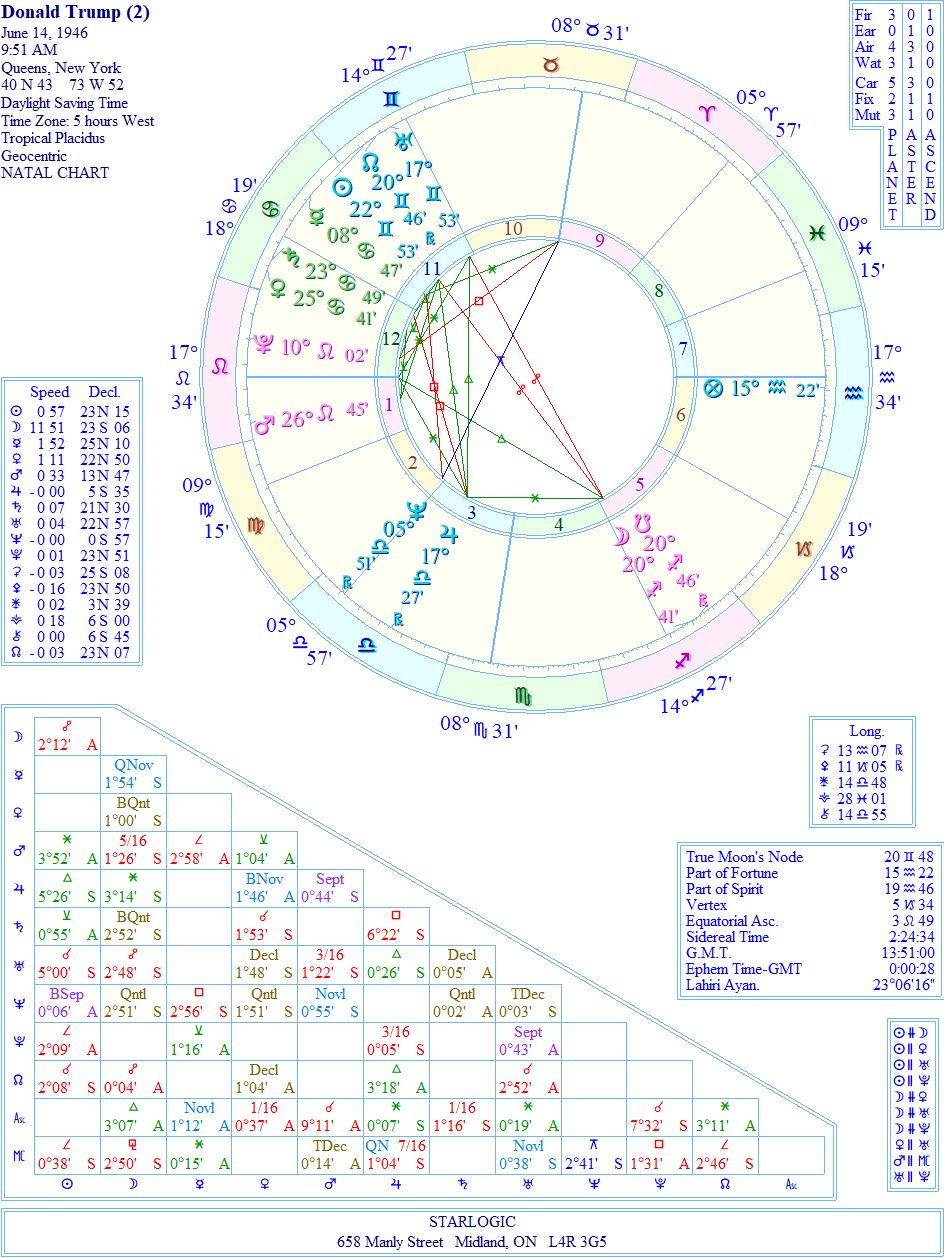 I decided to start this post with a joke image, because the subject of it is the biggest joke of all. Remember the hubbub about Barack Obama’s fake birth certificate? Who pointed the finger? Donald Trump! That means three fingers were pointing back at himself. After Trump won the 2016 presidential election, astrologers wondered how they’d got it wrong. And then someone wrote this critique. I’d never read it before, because I hadn’t asked the right research question on Google. Yesterday, my astrologer friend, Steve, asked me to produce a revised birth chart using 9:17 am instead of the usual 10:54 am. I did as he asked but then immediately questioned if Trump could really have Pluto on the Ascendant. After doing my research this morning, I realized that someone is distorting the truth the other way, which is just as dishonest. I have now decided to stay with the middle of the road time of 9:51 am.