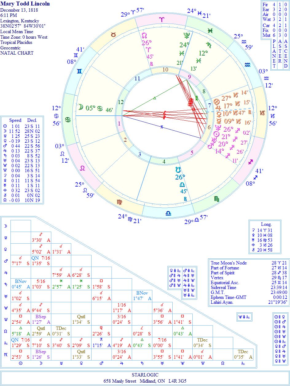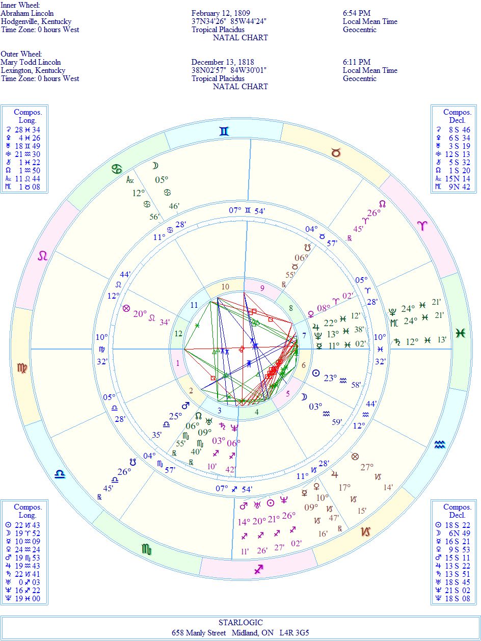 When looking at a couple’s combined charts, I try to see if there are any points of connection. Well, of course there are between Abe and Mary, and the one that stands out as the most important is that Abe’s Jupiter is conjunct Mary’s Pluto/Midheaven conjunction. The second significant connection is Mary’s Saturn is conjunct Abe’s Mercury on his Descendant. (And let’s not forget his Mars being conjunct her South Node: they reincarnated together.)