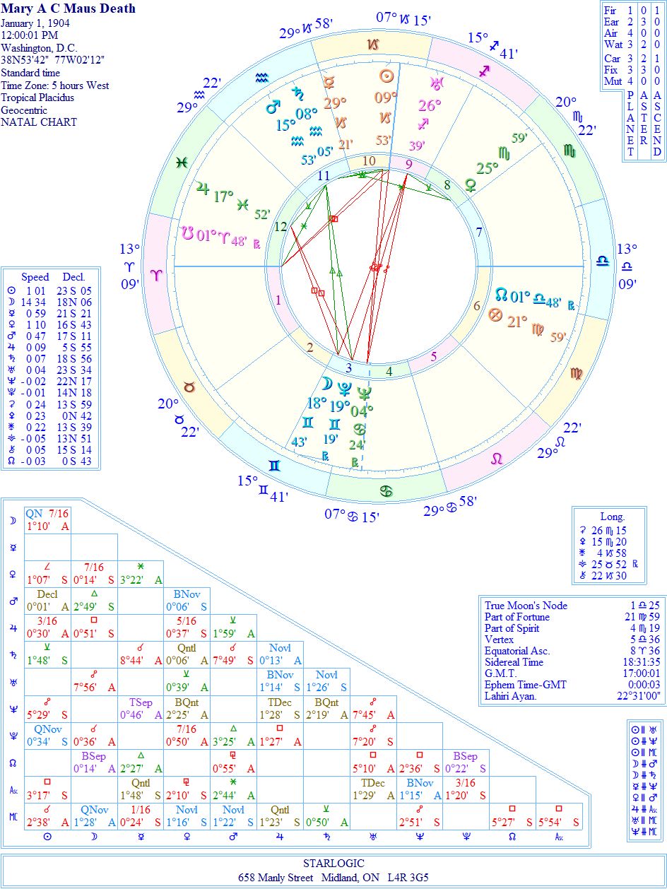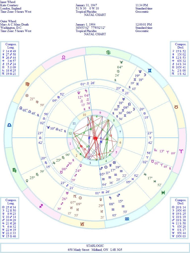 Oops, I’ve reversed the initials, and, as I don’t know the time of death, I have set the clock for 12 noon. Still, something interesting came of it. But will it hold up under scrutiny when compared with Kate’s birth chart?