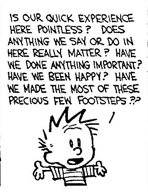 I especially appreciate Calvin and Hobbes‘ take on the meaning of life.