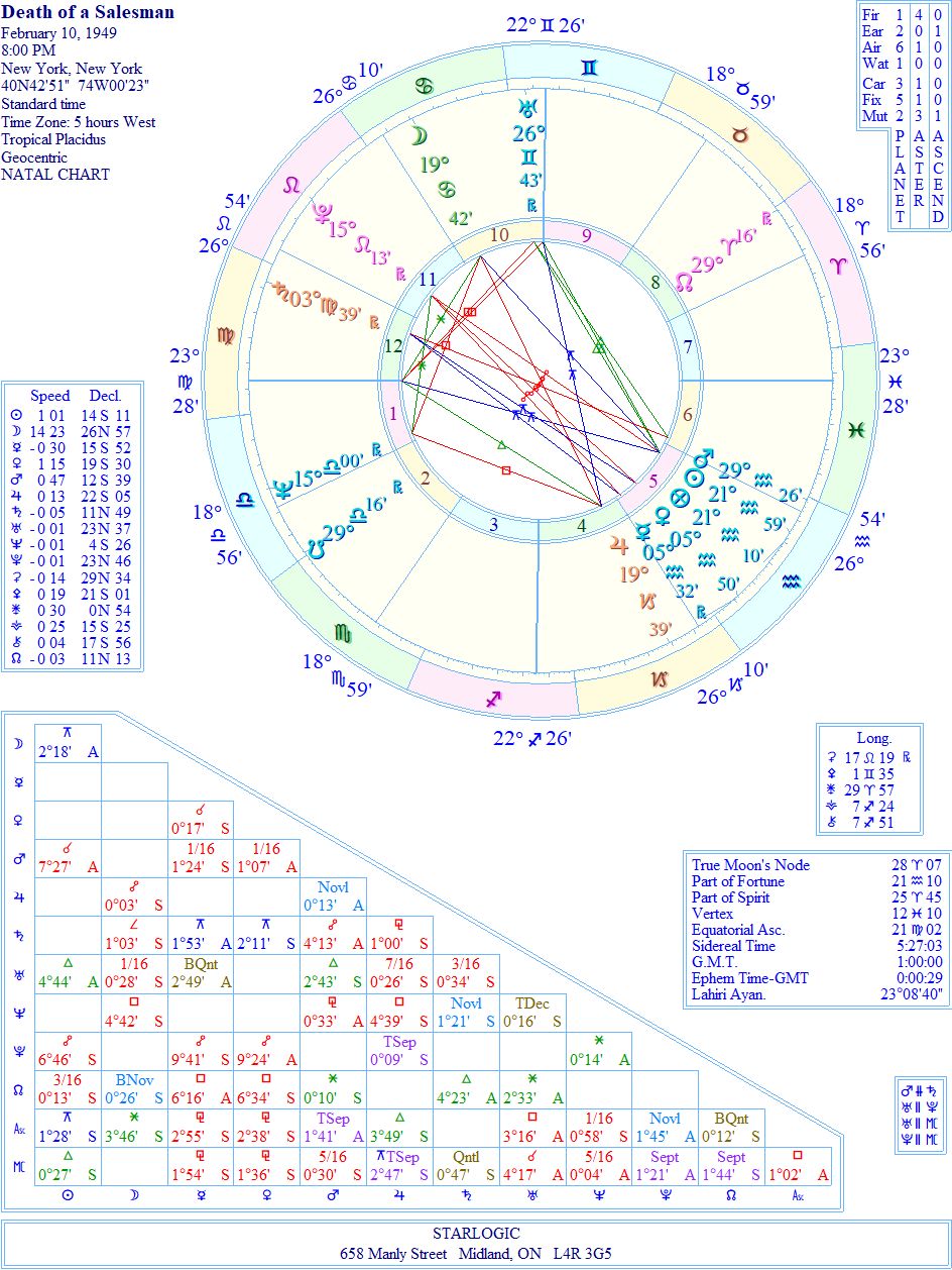 I got the brainwave to raise the chart for the debut of the play on Broadway at about 5 o’clock this morning. I wasn’t sure what I’d see, but I was reasonably secure in the thought that the play’s lasting influence on society would be there, somehow.