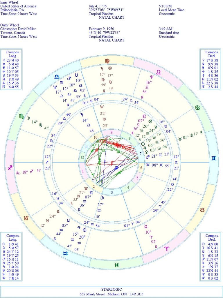 I was alerted to a situation, by an astrologist friend, that I had always suspected, but never ‘knew’ for a fact. She was discussing the USA and Pluto’s Return in a blog. She pointed out that the USA’s Mercury is @ 24° Cancer 12′. A bell went off in my head: my Mercury is exactly opposite @ 24° Capricorn 12′. Is that why everything about it seems so personal to me?