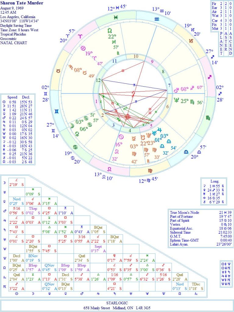 In the original post I did about Sharon’s murder, I noted that there was a Yod connecting her birth and death charts. Well, I neglected to say that in the ‘murder’ chart, there is a Yod pointing at Mars. The inconjuncts involved are the Moon/Venus on one side and Saturn on the other. Up until now, I have withheld that information, because its interpretation is too awful to contemplate, but the time has come to share my intuitive insight: