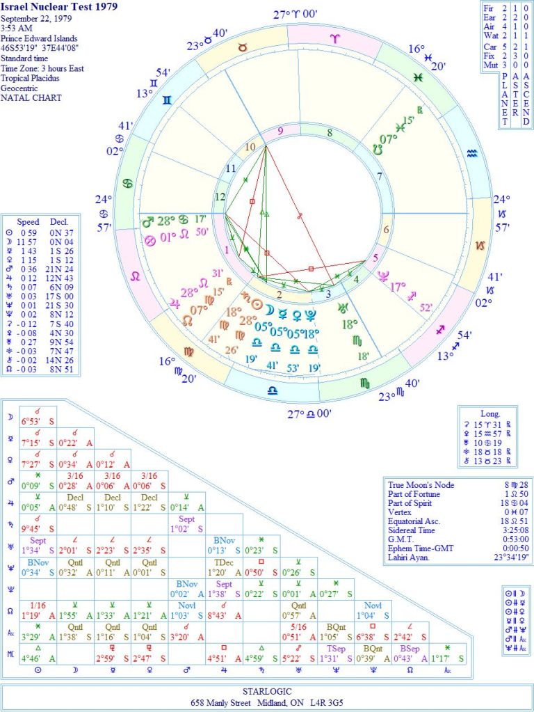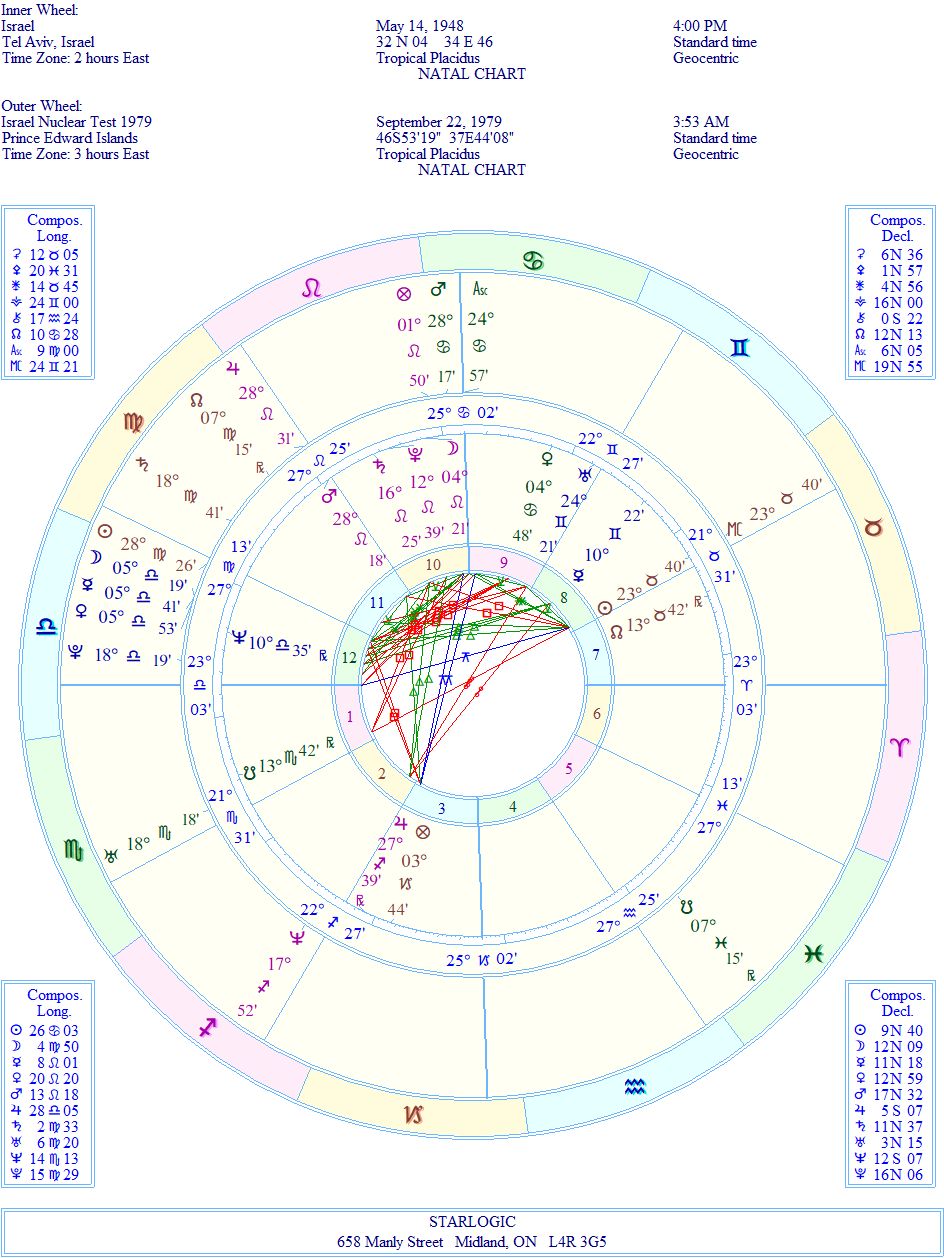 The Sun in the ‘birth chart’ of the State of Israel is exactly conjunct the Midheaven of this ‘event’. That’s the proof, in my opinion. The other connections support this idea, so I rest my case. Anyone care to disagree?