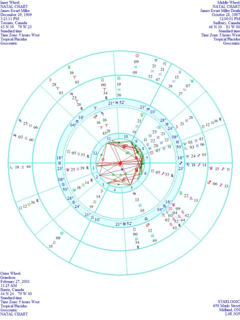 Do you see the similarity? (And before you say, “Well, they came from the same gene pool, didn’t they?” please consider that Avery was born before I even knew that my father had died. And it had never occurred to me to compare their charts until today.) None of the rest of us in the intervening lives (me, and my son, Derek) look like this. And my grandson is sooo smart.