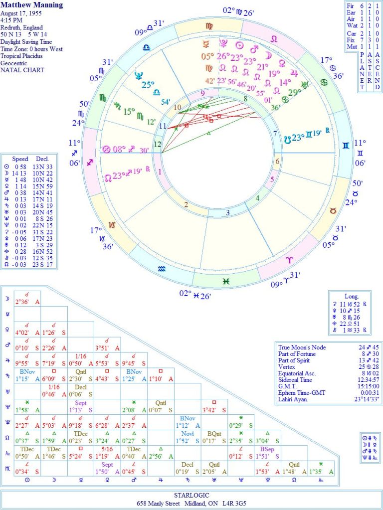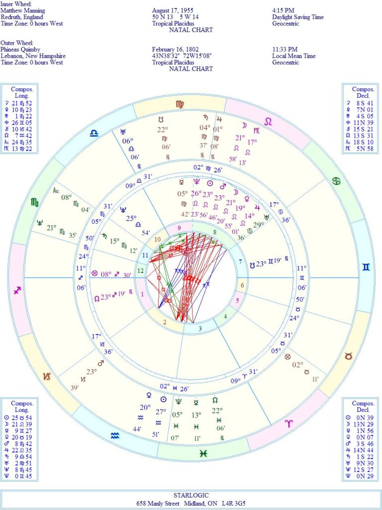 That same configuration in Matthew’s chart is now completely echoed in Quimby’s death chart, and his ‘fatal’ Sun/Moon/Midheaven conjunction is totally inconjunct Matthew’s Sun/Mars/Pluto conjunction. These men are two healers cut from the very same cloth.