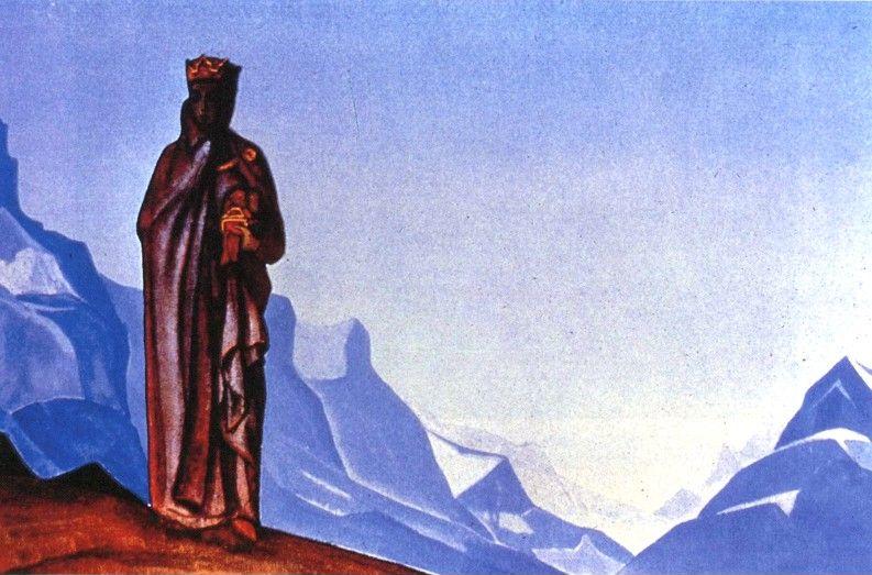 When I first read the title of this painting, I thought: ‘That can’t be right…’ As with all translations, sometimes the nuances are lost. Ten years earlier, a song was written with the lyrics, “He’s got the whole world in his hands…” and I suspect that is what Roerich intended with this painting. All he did was change the gender, perhaps as a homage to his wife, Helena.