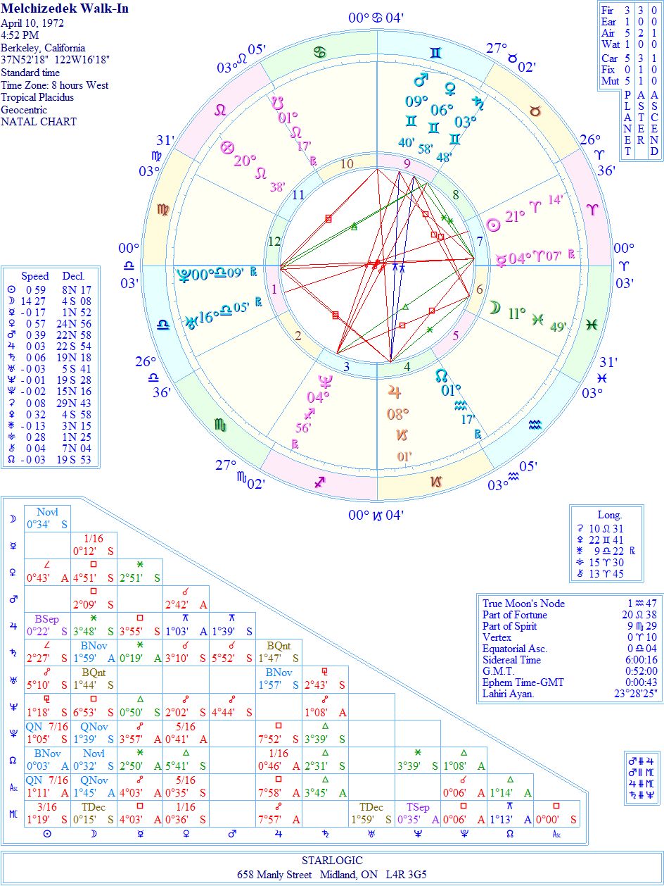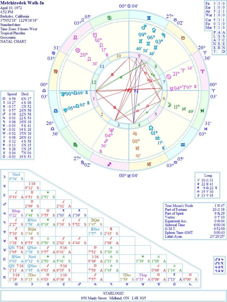The timing of this birth chart is rectified to reflect his Pluto experience at age 31. There are three inconjuncts, with an interesting Jupiter/Saturn conjunction in Taurus.