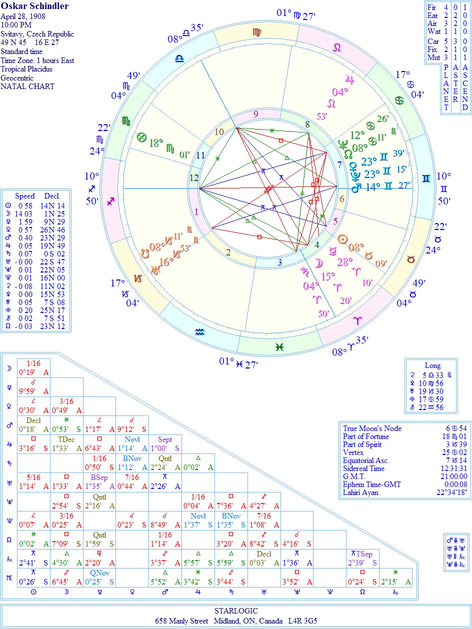 What is mostly missing from the story is that he started out as a spy for the Nazis in Czechoslovakia. This gave me a way to rectify his birth chart.