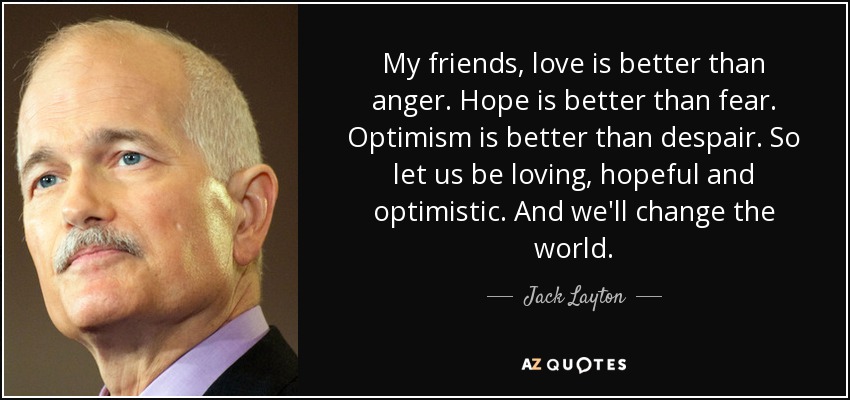 After Jack’s death, his wife, Olivia Chow, had this quote published. It is his epitaph, now.