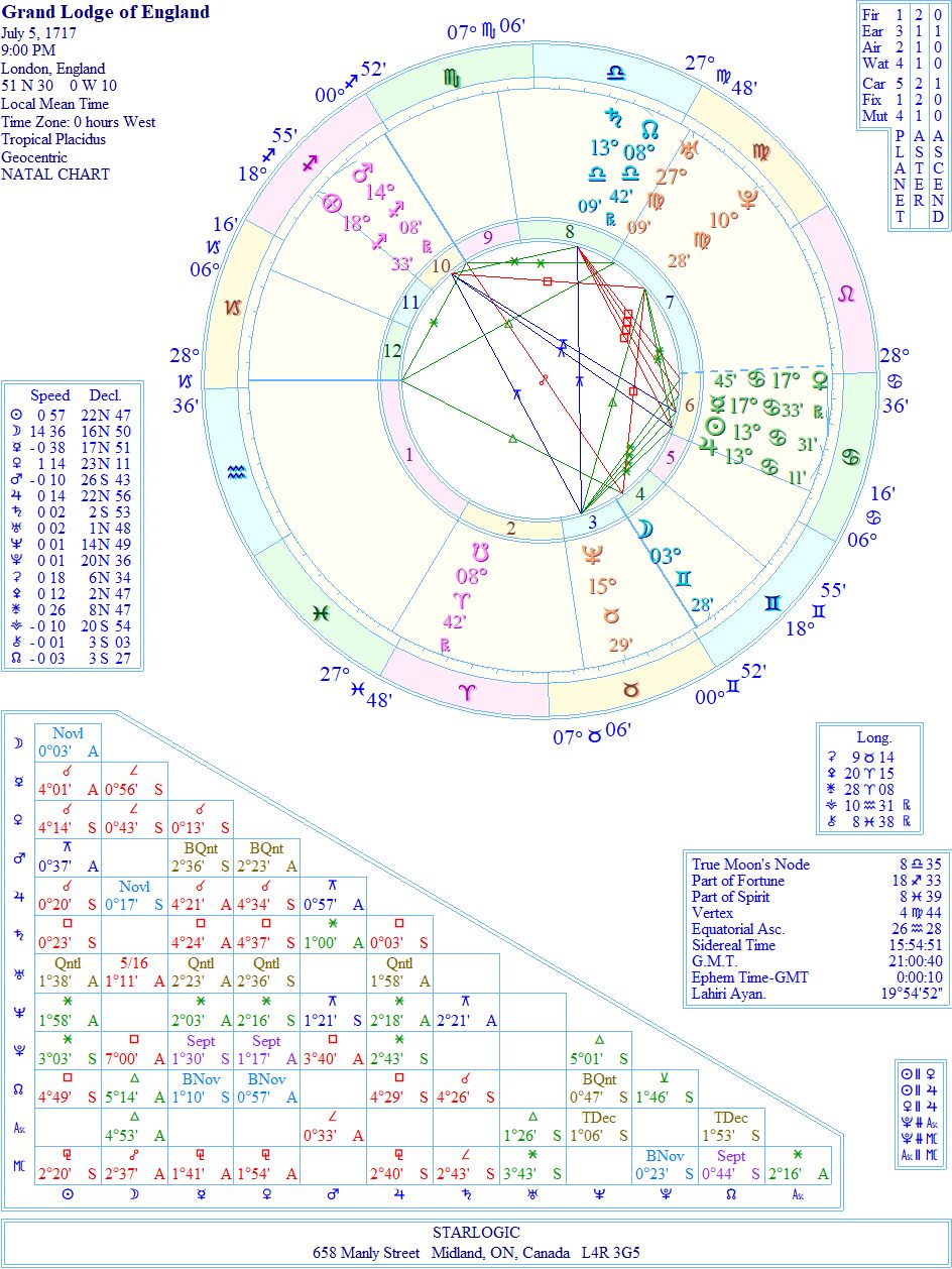 “The first Grand Lodge, the Grand Lodge of London and Westminster, later called the Grand Lodge of England (GLE), was founded on St John’s Day, 24 June 1717, when four existing London Lodges met for a joint dinner.” (Origins – Wikipedia)