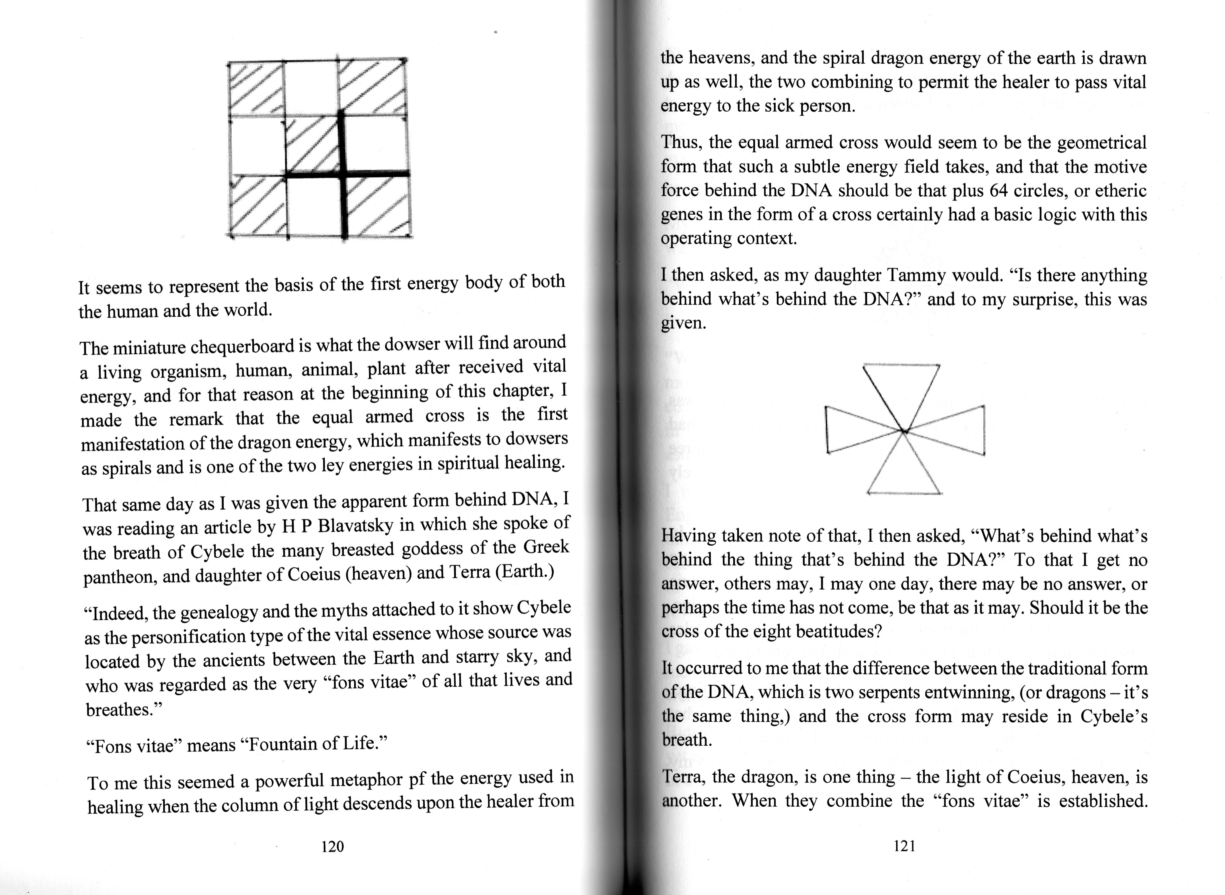 This might seem a bit out in left field, but those tiles are important for a connecting link with the Jerusalem Temple: the Knights Templar. Colin Bloy, in his book I’m Just Going Down to the Pub to Do a Few Miracles, explains (in Chapter 21: What’s Behind DNA?) that “Of course, the equal armed or Greek cross was the first cross used by the Templars, and if the theory was right, it was also the first manifestation in the form of dragon energy, as seen in the first Fountain Experiment. […] The Greek cross is the basis of the chequer board when you work it out thus:”