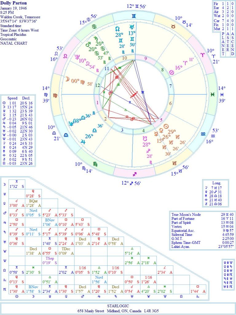 I knew that looking at Dolly’s birth chart, I would get to see why she turned out the way she did: Chiron in the 2nd House conjunct to Jupiter in Libra. Hmm.