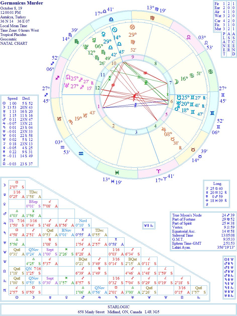 This chart was originally randomized, but then I decided to rectify it based on the age (34) that he was killed (Mars). I always wonder when the resulting Ascendant is then close to my own @ 18° Sagittarius.