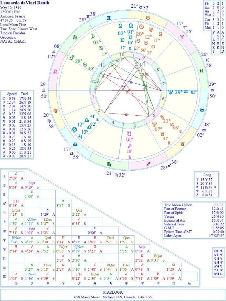 Honestly, you would have thought that I’d done Leonardo’s death chart before now, but it turns out that I hadn’t. This oversight correction was prompted by a YouTube video I watched today: