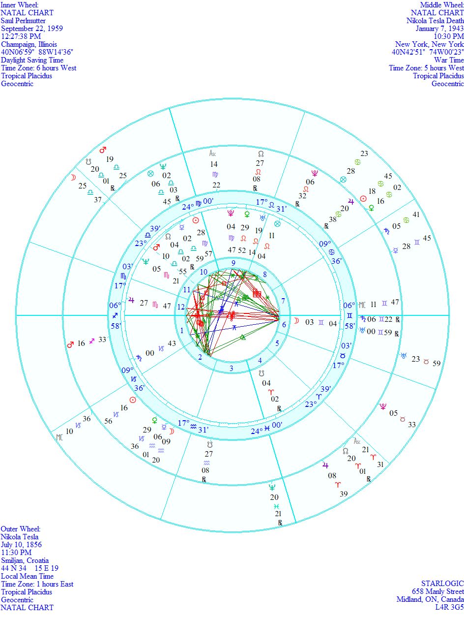 Comparing Perlmutter’s Birth Chart with Tesla’s Charts