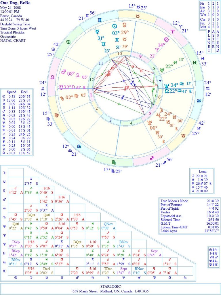 I used to think that her ‘two-minds’ personality was just down to her being born under the influence of Gemini. Now I understand the ‘bigger’ picture, it makes me think that her dog’s purpose this time around was to recreate a past-life situation (South Node conjunct Ascendant, North Node conjunct Neptune on the Descendant). She truly may have been my dog from 1955: Columbus.