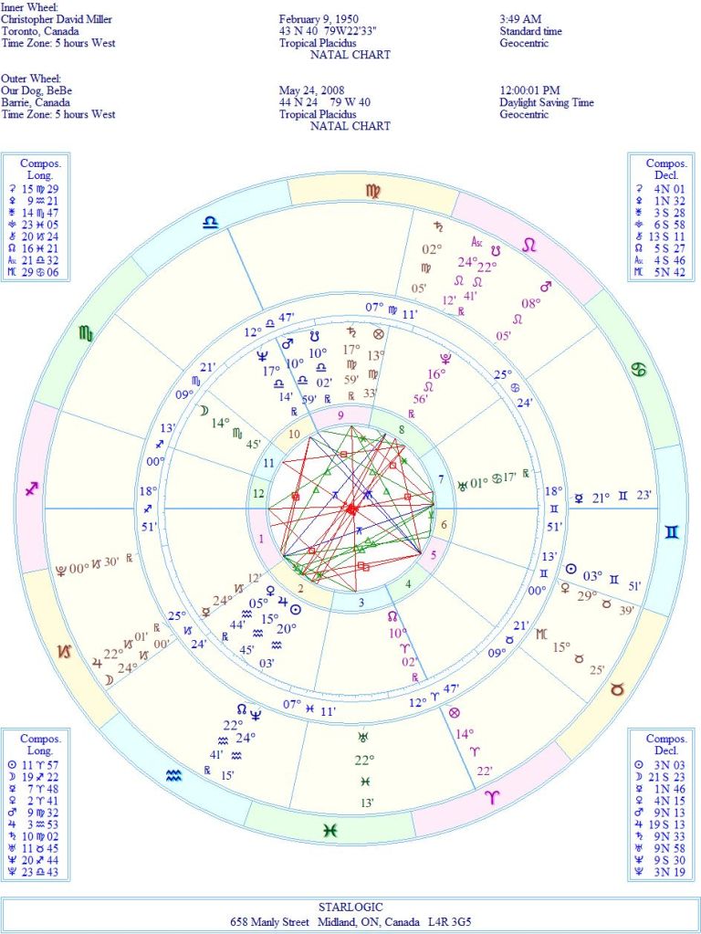 This might seem outrageous, too, but I swear that astrology plays a big role in how pets and their owners get along. Compare my wife’s birth chart with that of our latest acquisition.