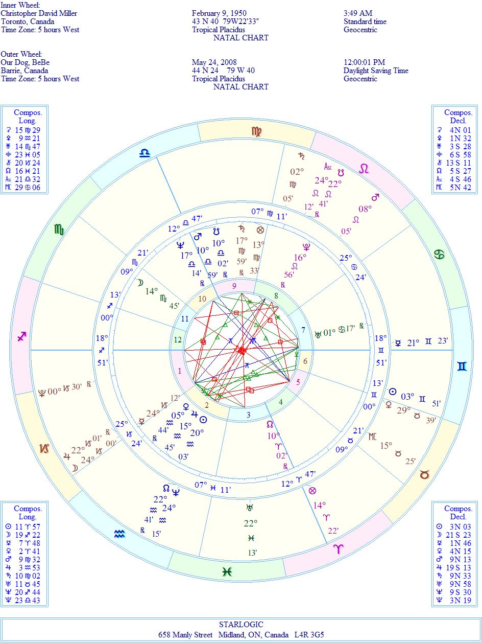 This might seem outrageous, too, but I swear that astrology plays a big role in how pets and their owners get along. Compare my wife’s birth chart with that of our latest acquisition.